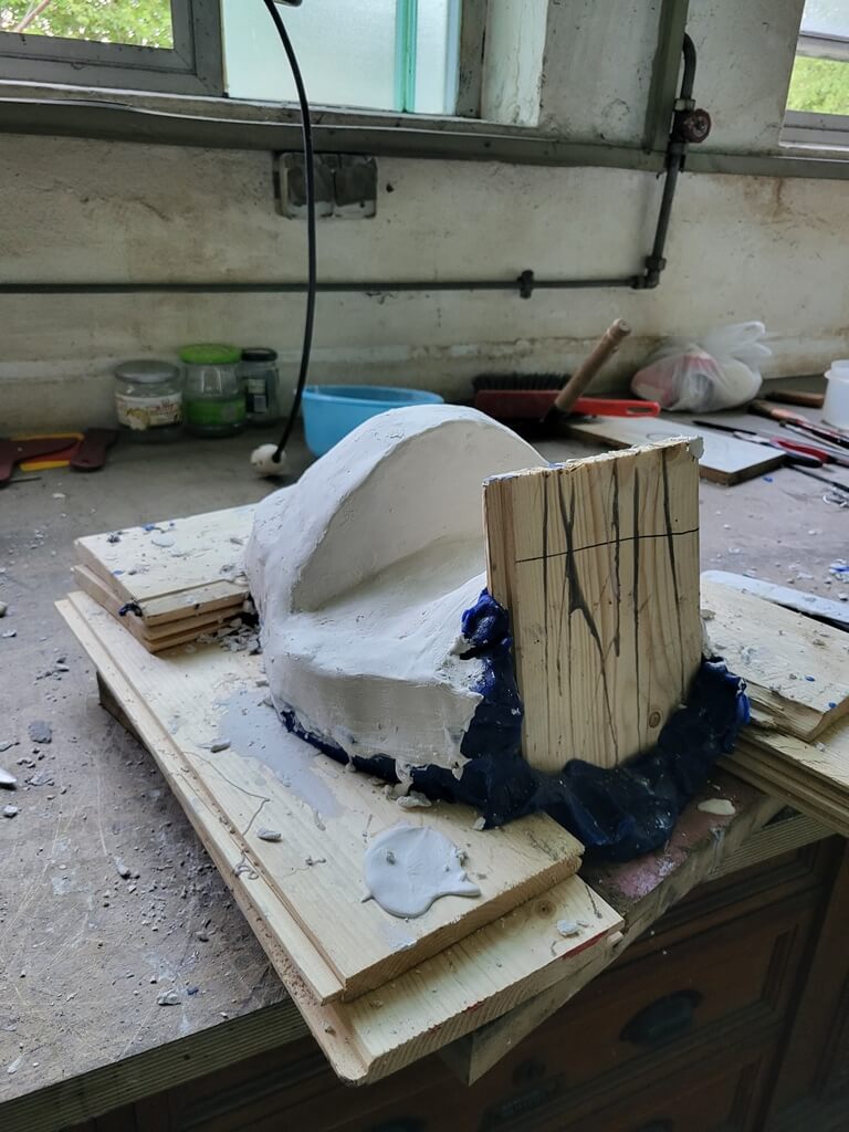 Zunächst mussten wir das Wachsmodell reparieren, um eine perfekte Form als Grundlage für die Silikonnegativabformung zu erhalten. Künstler erstellen ihre Modelle entweder mit Gips, Ton oder Wachs. In diesem Fall verwendete der Künstler Wachs, was die Reparatur durch Wärme vereinfachte.